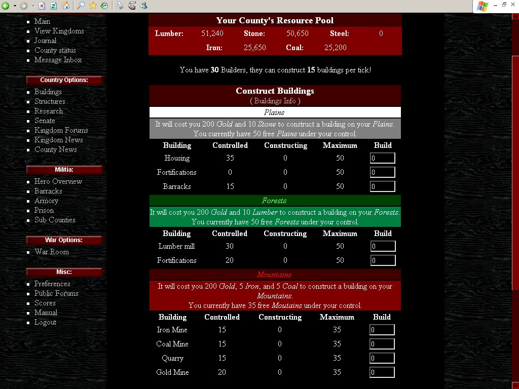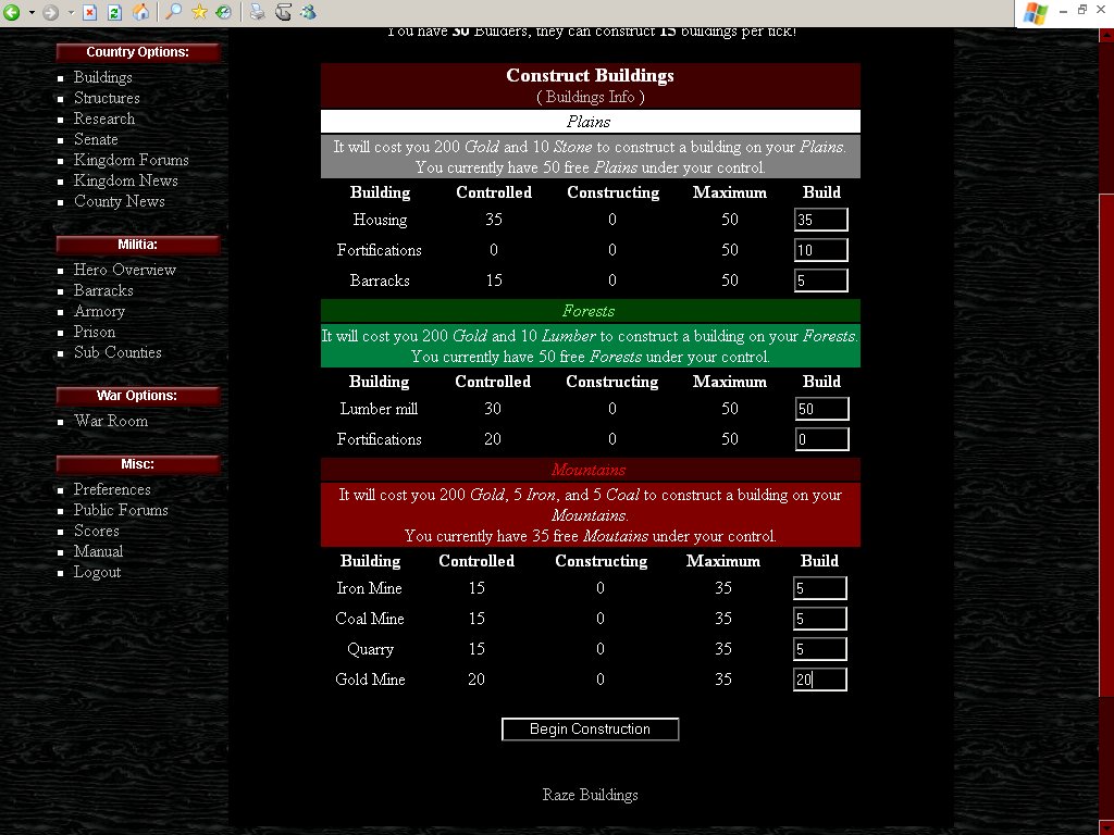 After you have finished inputing the amount of buildings you want, click on Begin Construction at the bottom of the page.