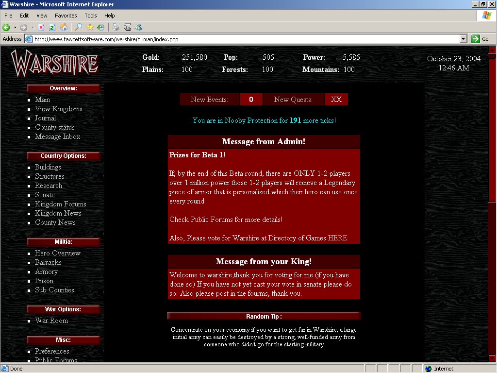 Any messages which the Admin or your King have also written will be shown on the main page and a random tip on how