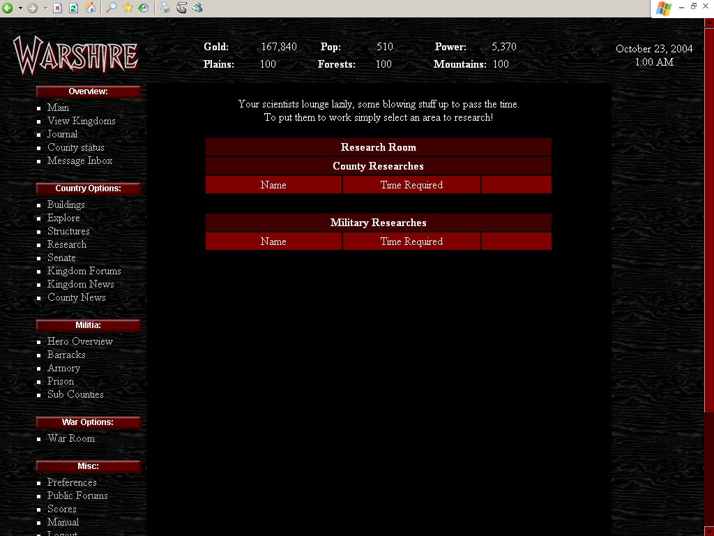 types of research, County research which improves your county, such as the tier level increases and Military research