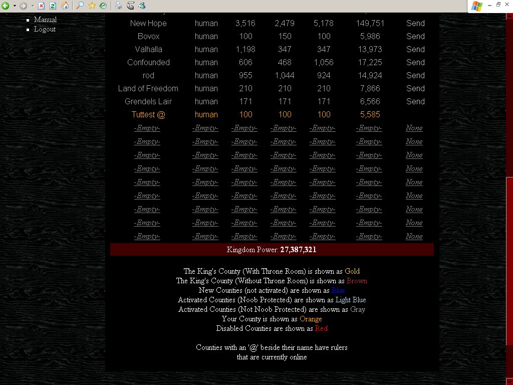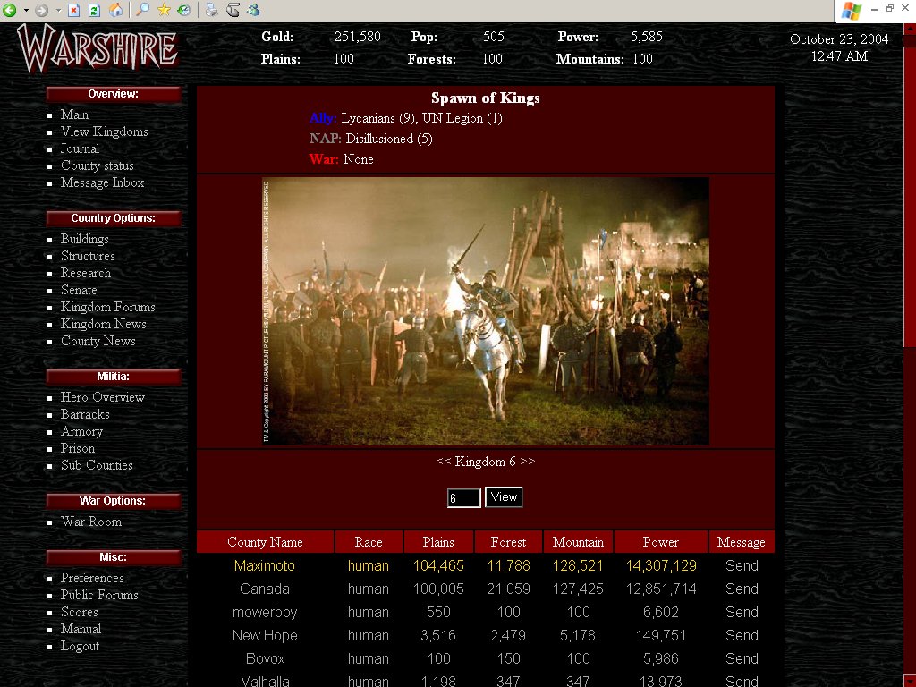 The View Kingdoms page allows you to browse through the various Kingdoms of Warshire and see all of the counties